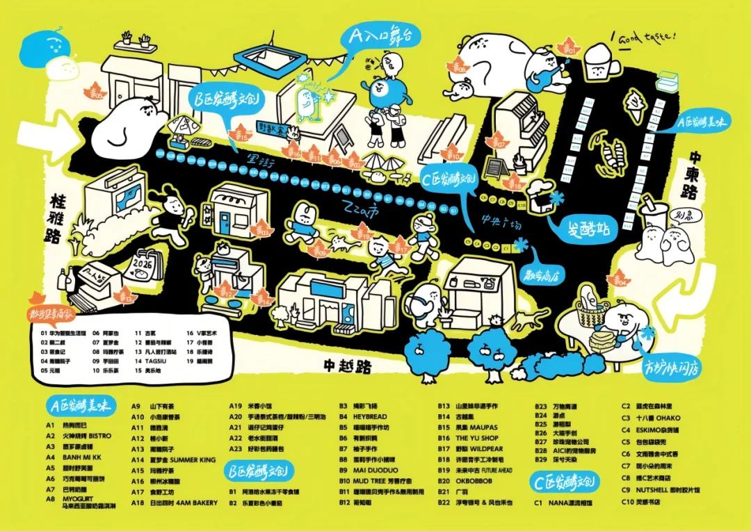 别急发酵节的市集是一场有玩法的沉浸式体验,60+品牌覆盖里街、中柬路、中庭 C 区等多个点位,本土特色+外地宝藏,逛上一天都不重样。