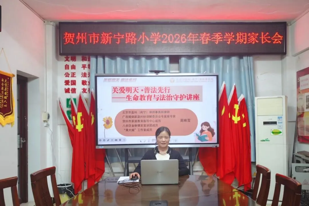 3月13日晚,八步区关工委携手盈科南宁,为八步区新宁路小学带来以“生命教育与法治守护”为主题的法治宣讲活动。此次宣讲由八步区金秋银发宣讲团、盈科南宁律师莫映雪主讲。通过直播形式覆盖全校老师及家长,2000余名家长在线同步参与。