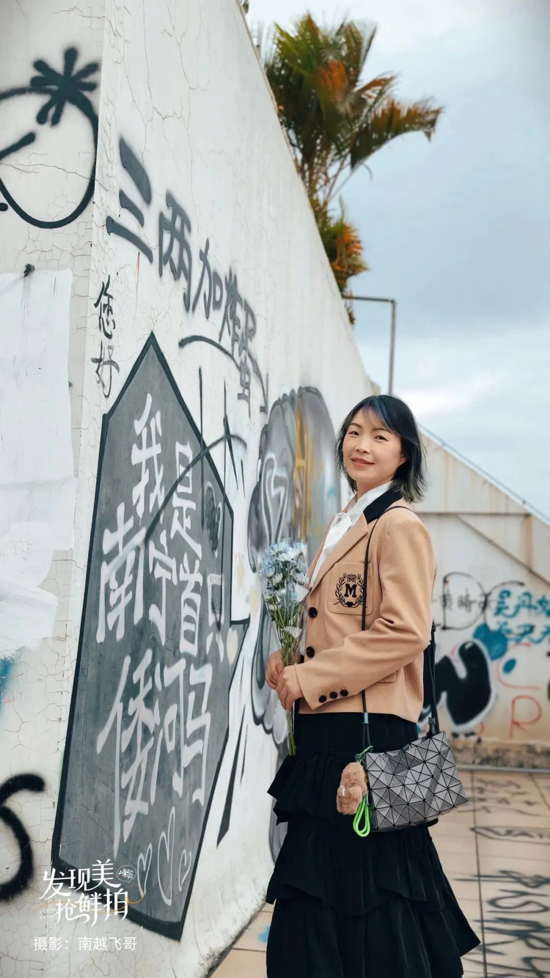 把自己嵌在这涂鸦墙前