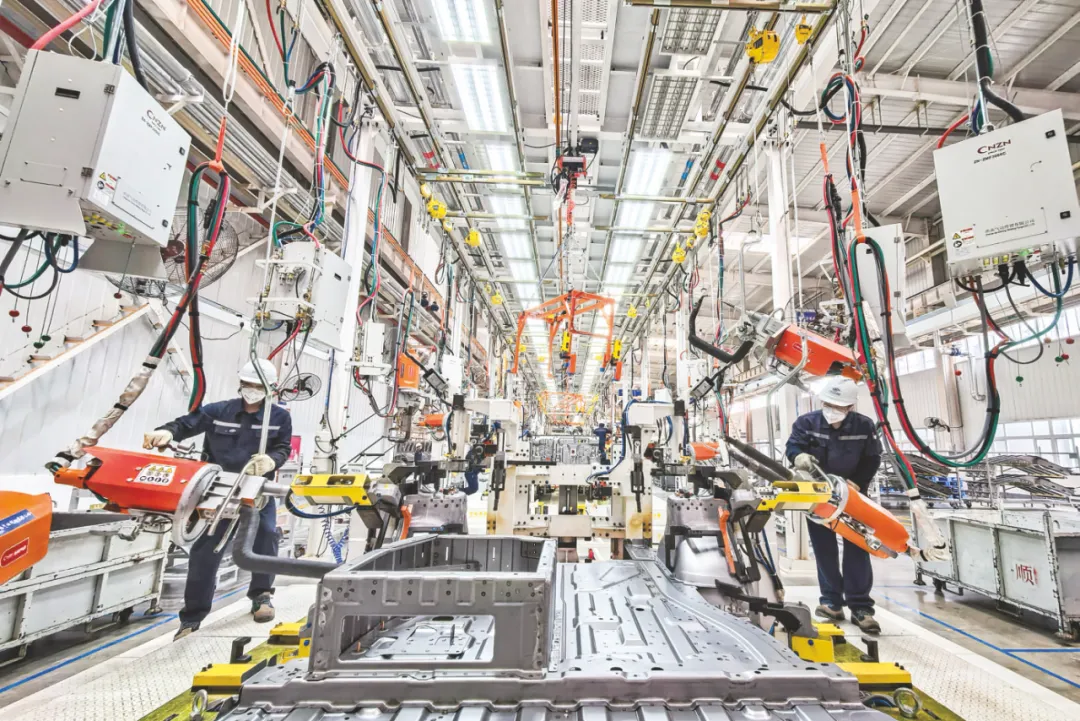 这里集车身焊接、车身电泳喷漆、组装于一体,通过引进自动化机器人产线、智能物流系统和MES制造执行系统,实现了多品种混流生产和全过程质量追溯,车间处处是“人机协同”的智慧场景。