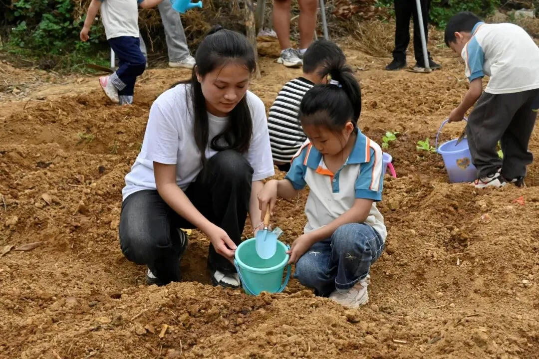 小铲子轻轻挖坑种子慢慢入土幼儿园的小朋友们踮着脚把好奇与期待埋进泥土泥土沾了小脸笑容却比阳光更暖每一粒种子都承载着