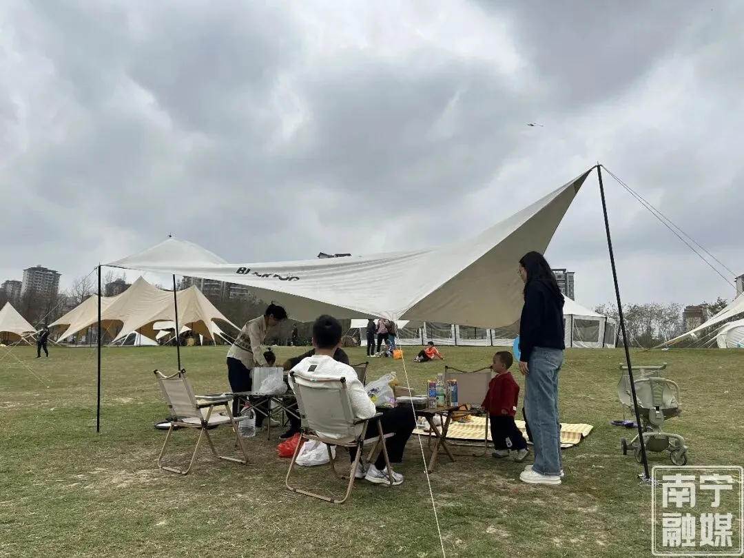 市民白照丹与姐妹相约来灵龟山“微度假”,她对营地的便利赞赏不已:“这里交通方便,户外活动空间宽敞,适合聚会、游玩和露营。春天看黄花风铃木,冬天看落羽杉,还有一江碧水相伴,不用出远门就能欣赏美景,希望这样‘小而美’的公共文旅空间在南宁遍地开花。”