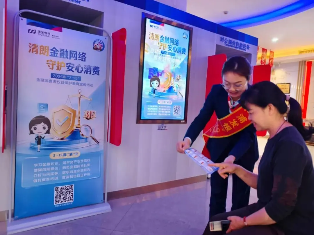 2026年“3·15”金融消费者权益保护教育宣传活动期间,浦发银行南宁分行厅堂金融知识宣传员与客户拉家常、讲案例,以接地气的方式向客户传递金融风险防范要点。同时,浦发银行分行积极推动数字化宣传,利用官方微信公众号等平台推出消保靠“浦”课堂、风险提示专栏,持续扩大宣传覆盖面,用心守护客户权益。