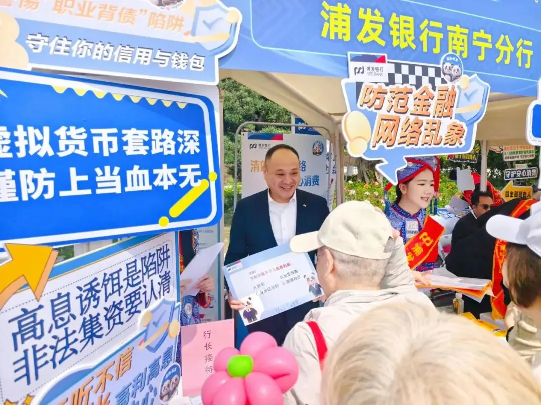 活动期间,浦发银行南宁分行充分发挥网点主阵地作用,在全辖营业网点设立“金融知识宣传教育专区”,统一张贴主题海报,摆放防范电信诈骗、个人信息保护、理性投资等宣传折页,电子屏滚动播放活动口号及风险提示短视频。