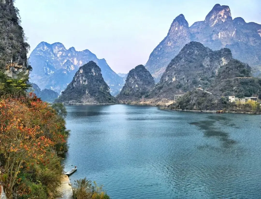 黑水河徒步线路位于广西崇左市大新县境内,沿清澈如墨的黑水河蜿蜒而行,全长约15公里。河水碧绿深邃,两岸喀斯特峰林连绵,溶洞、古树、竹林与壮族村寨错落分布,景色清幽如画。徒步途中可穿越原始河谷、涉浅滩、观飞瀑,偶遇白鹭翩跹、水牛悠然,尽显南国田园野趣。该路线生态保存完好,兼具自然美学与人文气息,是体验中越边境喀斯特地貌与生态秘境的理想轻徒步之选。峒那屿湾景区孕育在别样山水的黑水河域,聚集了桂西南奇山秀水之精华,人称“别样漓江”、“桂水仙河”,曾被《花千骨》、《蜀山战记》等多部影视剧取景。