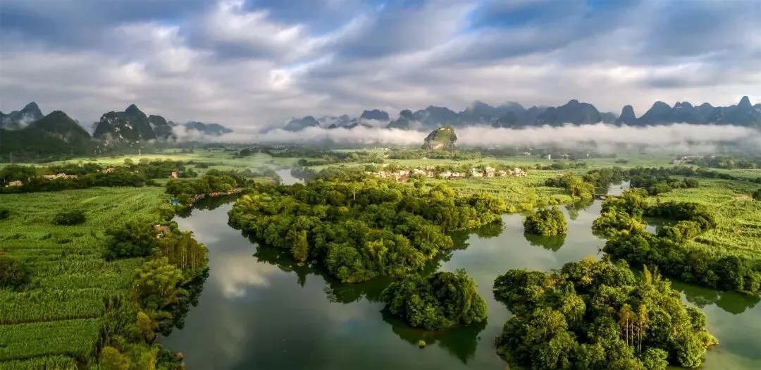 明仕田园位于广西大新县堪圩乡,是典型的喀斯特地貌田园风光带。5公里徒步线路穿行于如诗如画的稻田、翠竹、溪流与壮族村舍之间,远眺峰林倒映水中,近听鸟鸣蛙唱,四季景色各异——春有油菜花海,夏为碧绿稻浪,秋染金黄田野,冬显静谧水墨意境。沿途可探访壮族民居、体验农耕文化……