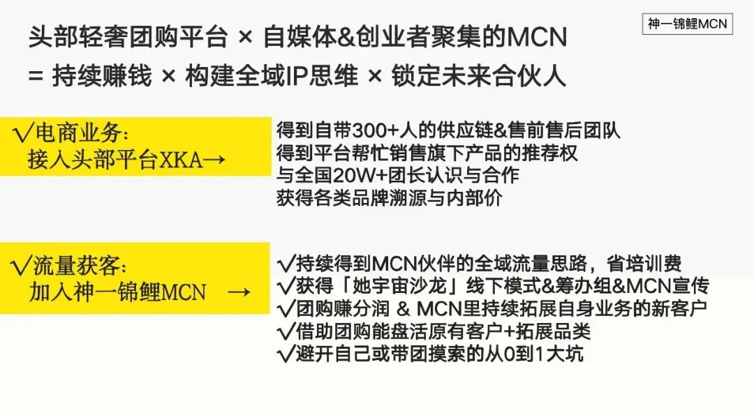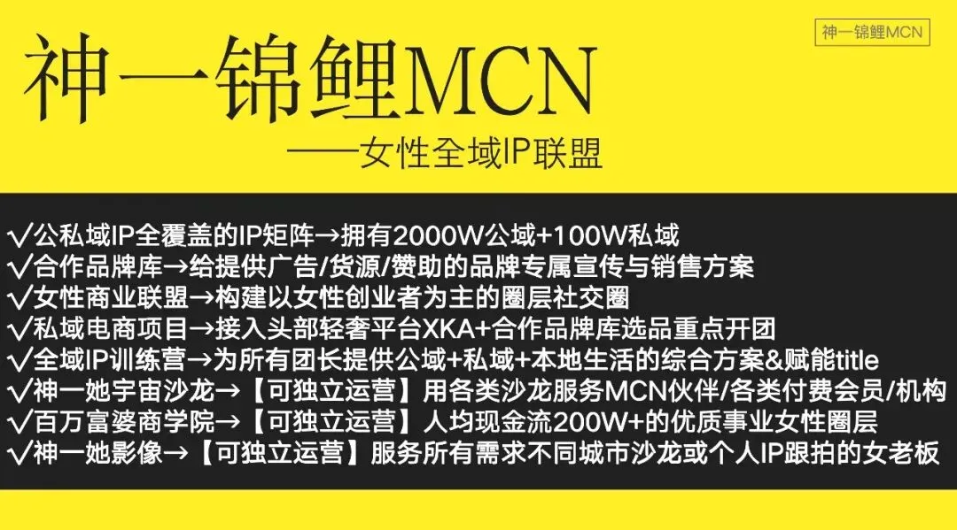 「她宇宙·沙龙」是 神一锦鲤MCN 旗下的女性成长品牌,一个专为女性打造的轻创业交流平台。
