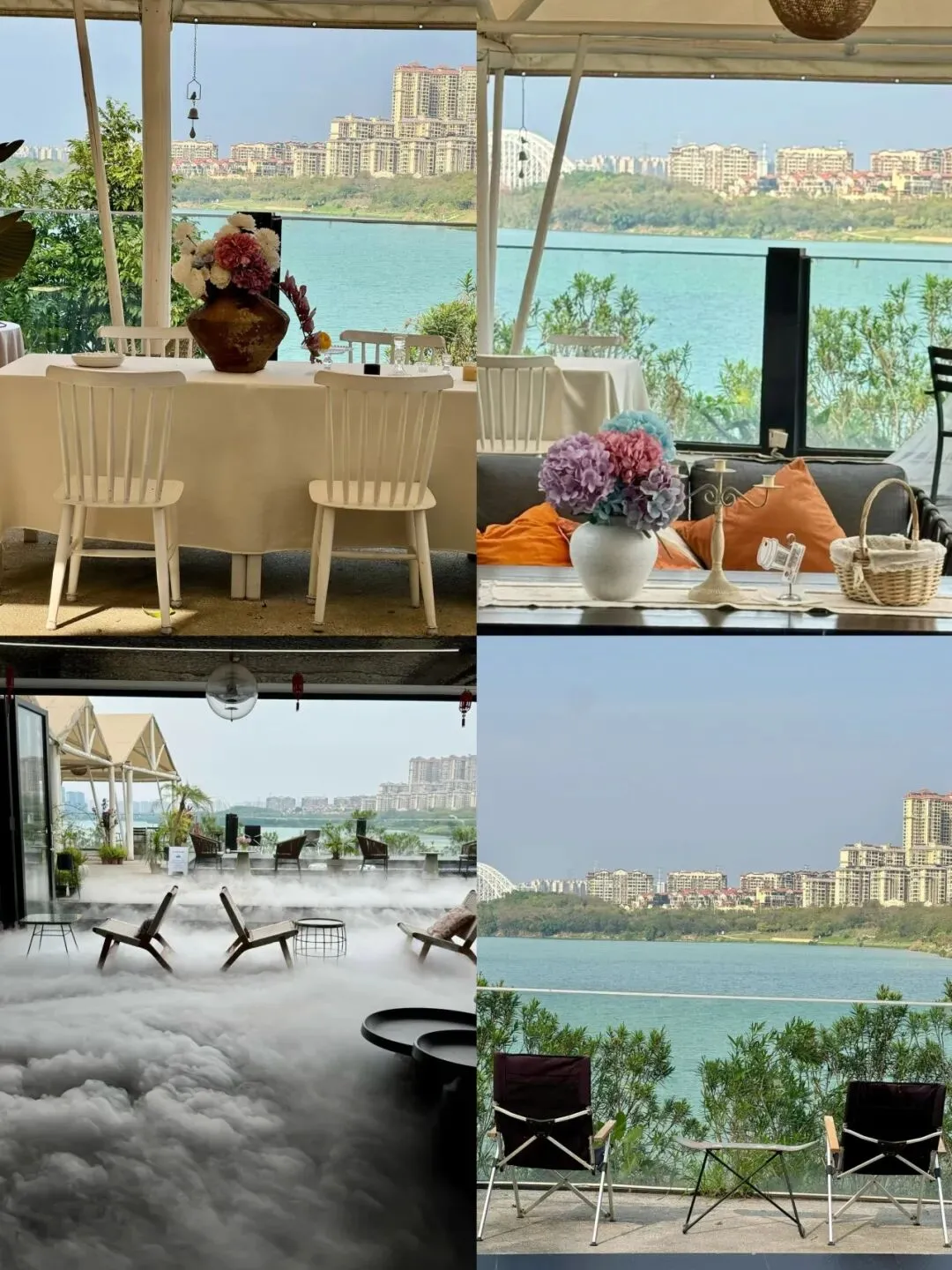 空间开阔松弛,橙色抱枕、编织篮随意摆放,无压迫感。雾气氤氲时,座位“悬浮”如云端,拍照自带治愈滤镜。