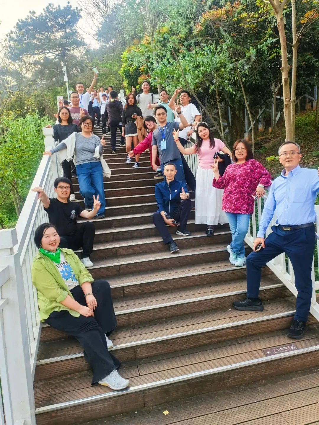第二天课后,承办的同学说:“4.2公里,大家可以走去餐厅,或者,乘观光车……”我们选择了步行,欣赏青秀山的美景。真的很美!一片树叶,就有半米长!出乎预料的是,4.2公里,先爬坡,再上台阶!同学们都是戈壁挑战赛的选手或准选手,日常训练不在话下。我们班智能体大赛的大主管海杰,更是在晨跑10公里之后,穿着坡跟鞋轻松上山。只有,“俺不中嘞!”收到了来自“碾米店”家少主润琪、两位班长、佳鸿总的财务总监郑总和侯老师的很多鼓励……