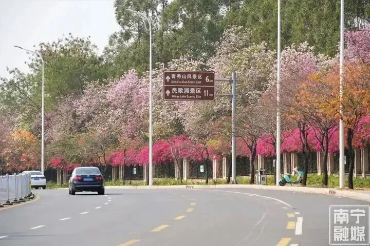 南宁,是一座被花朵包裹的城市,让这里市成为“没有围墙的花园”。樱花、桃花、木棉花、三角梅......整座城市如同一幅流动的春日画卷。