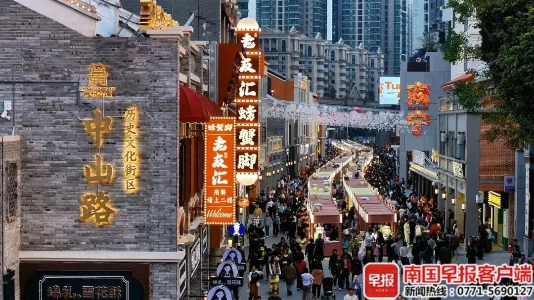 在邕州古城,青砖黛瓦间流淌着时光的味道,古老的历史建筑与现代商业完美融合。夜幕降临,灯光勾勒出飞檐翘角的轮廓,熙熙攘攘的人流仿佛穿越时空,聆听这座城市从古至今的故事。