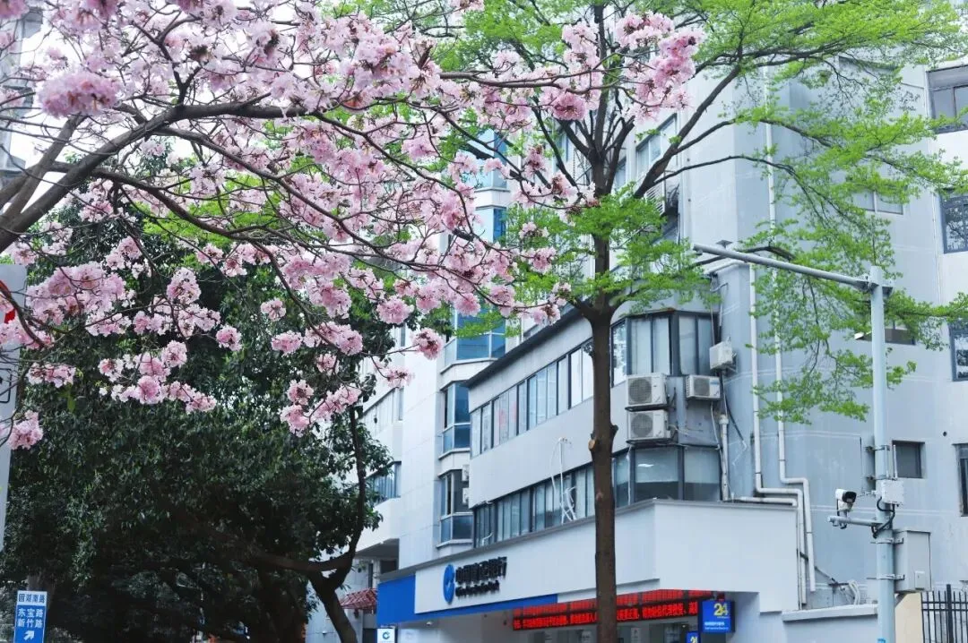 这就是东葛路28号,一棵枝繁叶茂的粉风铃正值盛花期,这里没有网红景点的熙攘人潮,没有刻意的雕琢,只有自然生长的美好。