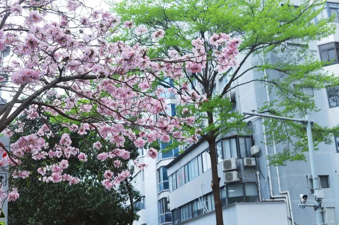 在抬头望见粉花的那一刻,烦恼烟消云散,只余下满心的欢喜——原来春天,就藏在这平凡的街巷里。