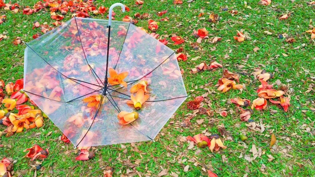 落花有意,雨伞有情,这便是邕城的温柔。