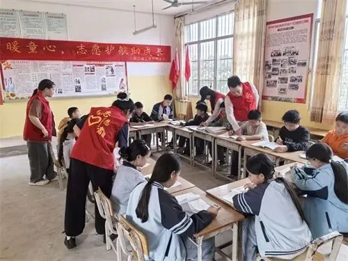图为志愿服务队为留守儿童提供课业辅导、成长陪伴