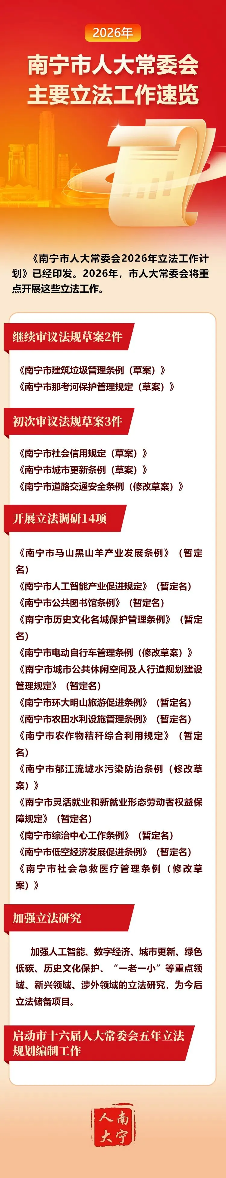 >2026年南宁市人大常委会主要立法工作速览