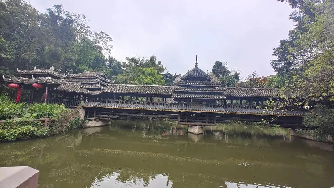 广西壮族自治区博物馆旁边,是一个免费开放的民族风情展示区。这里复刻了广西壮、侗、瑶、苗等民族的代表性建筑,其中侗族风雨楼和风雨桥是这里的核心地标,非常有特色。
