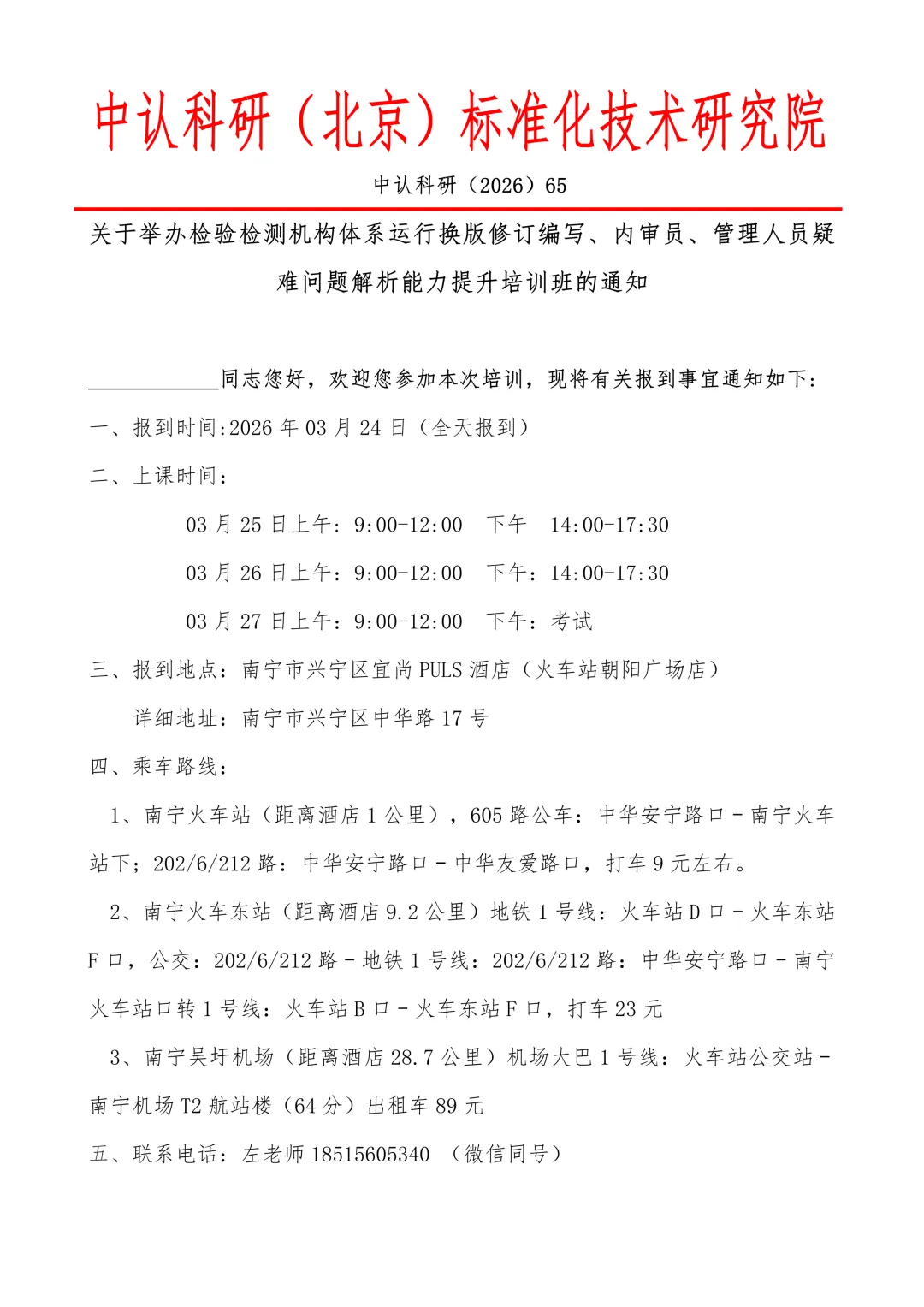 >南宁检验检测机构体系运行换版修订编写、内审员、管理人员疑难问题解析能力提升培训,有需要的联系左老师18515605340(微信同号)报名