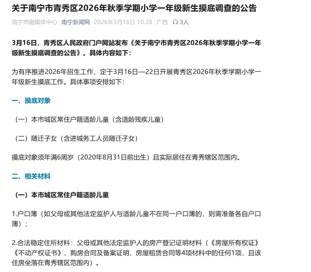前几天,南宁各大城区开始对新生进行摸底调查了: