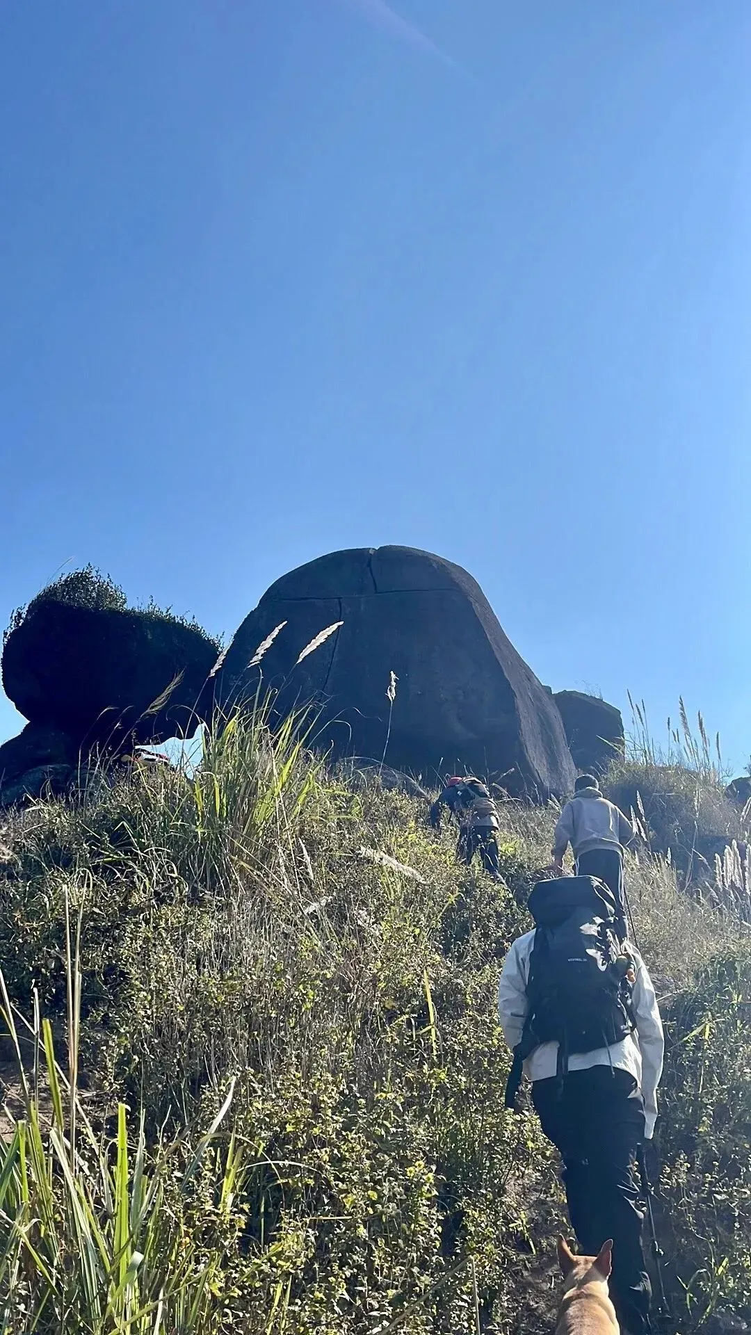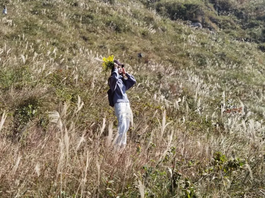 3.徒步至山腰草甸:从狗尾巴草的平台缓步徒步到山腰草甸,沿途有成片狗尾巴草,视角好,适合拍照。最后到达半山腰的草甸,休整,享用领队制作的简餐(面餐)。