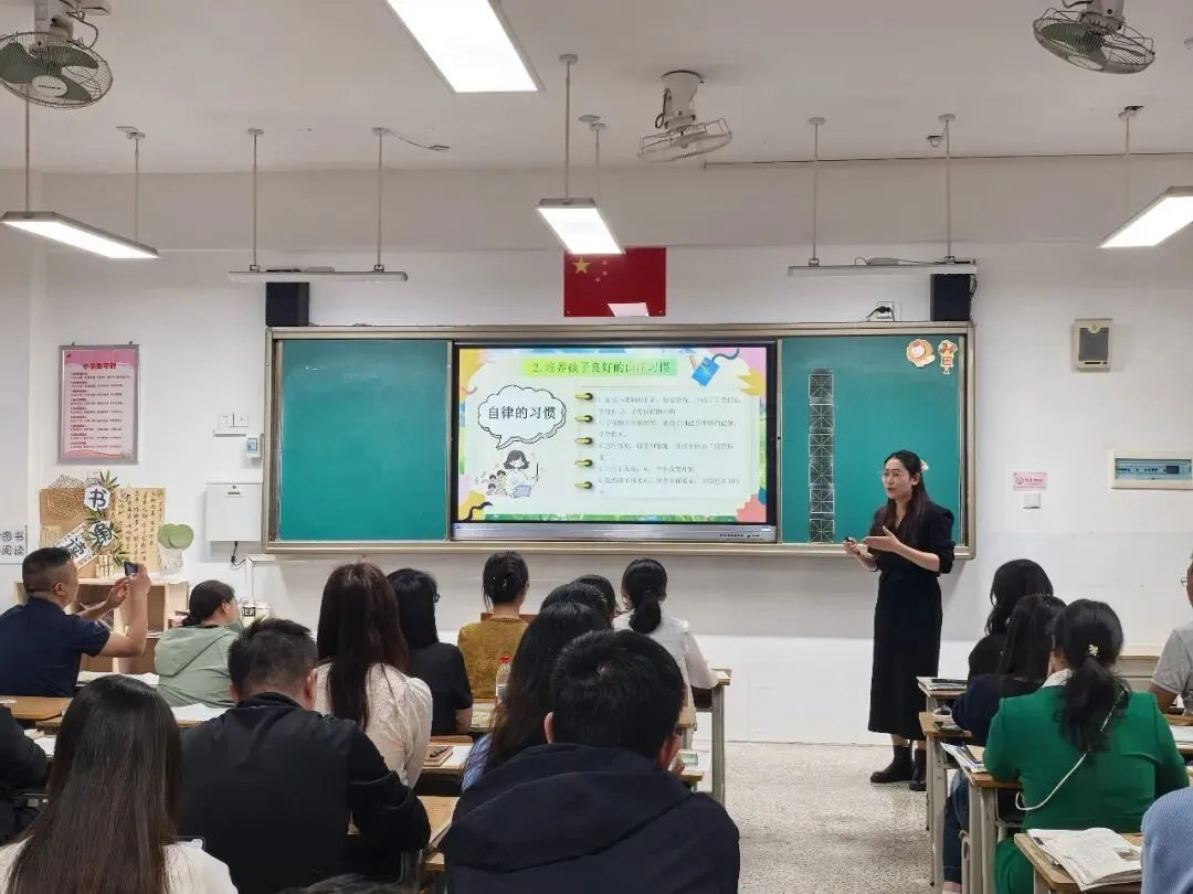随后,谢校长在讲座中围绕家校共育核心作两大重点分享。她指出,教育应坚持先成人、再成才,牢固树立健康第一的育人理念,引导家长重视孩子睡眠、运动与情绪管理,家校同心守护学生身心健康。同时,校长从德育建设、教学提质、后勤保障三方面介绍学校工作,深化五育融合与教研创新,筑牢校园安全防线,呼吁家校社携手凝聚育人合力,共促学生全面发展、茁壮成长。