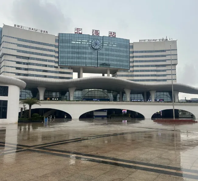 北海有高铁、有高速、有深水港,也有一座小巧的福成机场。 建议走高铁——从南宁出发,不到两小时,终点站就是北海。动车比自驾稳,海边风大,方向盘容易被吹得偏。自驾当然也行,沿着南北高速一路向南,车窗外景色很快就换成了海的颜色。 机场离市区不远,打车半小时能到银滩。若赶不上航班,也别慌,北海的天常蓝,晚点的飞机反倒能带你看到更柔软的日落。