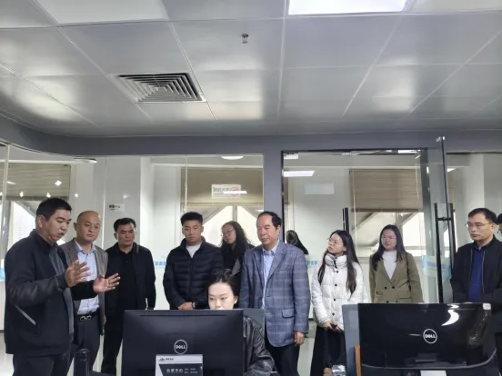 走访首站为广西集联海保技术服务有限公司,武鸣区党委政法委副书记潘采吉、武鸣区综合行政执法局副局长李永甫及企业项目负责人李大帅接待走访团一行。在企业方陪同下,走访团实地参观“平安武鸣”社会治理指挥中心,现场了解核心系统的功能模块与应用场景。座谈会上,马纪涛副校长介绍了学校办学定位、学院专业结构与毕业生培养优势,指出学院的数据科学与大数据技术、人工智能等专业设置与集联海保的业务发展方向高度契合,校企合作空间广阔,期待在实习实训基地共建、联合研发、定向培养等方面深化合作。李文敬院长在交流中对“平安武鸣”系统的大数据采集、实时监控能力给予高度评价,提出引入深度学习优化系统预警模型的技术建议,获潘采吉副书记高度认同,双方均希望开展深度技术攻关与人才培养合作,助力地方社会治理数字化升级。