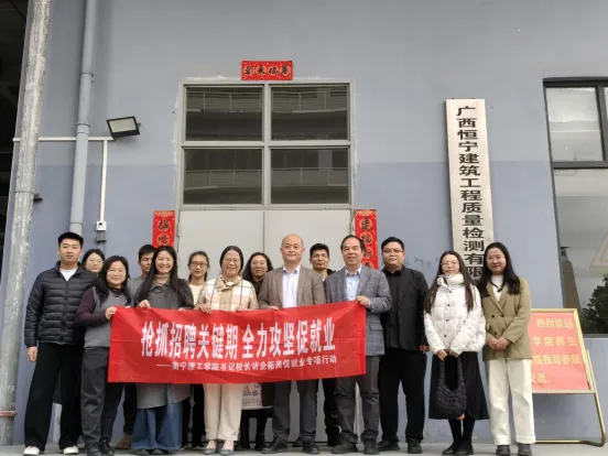 为精准对接企业人才需求,拓宽2026届毕业生就业渠道,深化校企产学研合作,推动毕业生高质量充分就业,近日,南宁理工学院纪委书记、副校长马纪涛带队,大数据与人工智能学院院长李文敬、党总支书记王辉及毕业班辅导员、学生代表,赴广西集联海保技术服务有限公司、广西恒宁建筑工程质量检测有限责任公司开展定向访企拓岗专项行动。