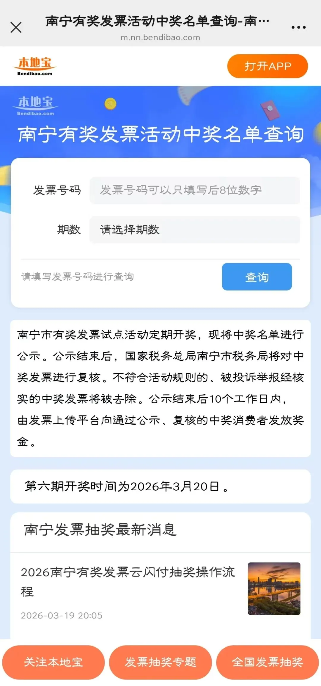 将进行南宁第六期有奖发票抽奖!