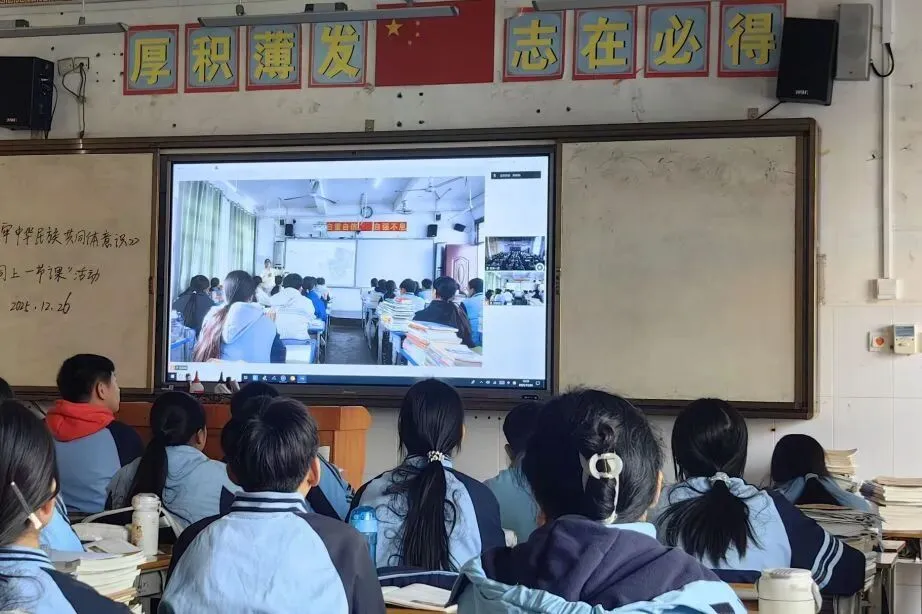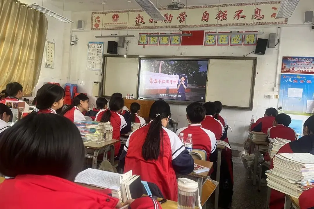 文化认同是民族团结的根脉。在“同游一个馆”环节,两校依托VR全景技术,共同“走进”崇左市壮族博物馆,开启了一场别开生面的云端研学之旅。