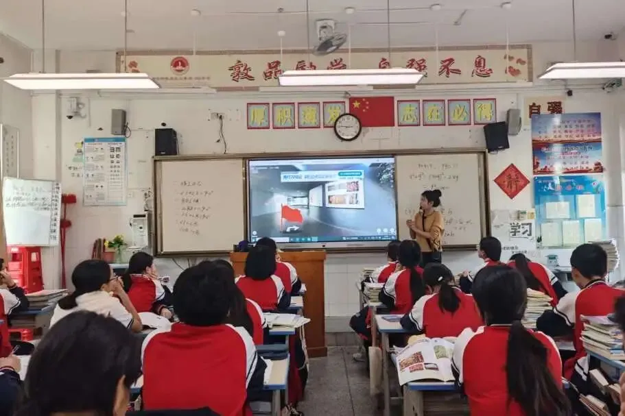 通过VR设备,两校师生仿佛置身同一座宏伟殿堂,在“云端导游”指引下,共同参观“壮族人文始祖布洛陀”“壮族历史文化陈列”等展厅。从精美铜鼓纹饰到绚丽壮锦服饰,从古老花山岩画到近代革命文物,两校学子在虚拟空间中近距离触摸历史,感受壮乡文化的独特魅力。这种沉浸式体验,让原本静止的文物“活”了起来,让历史变得可感可触。