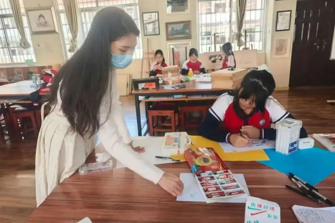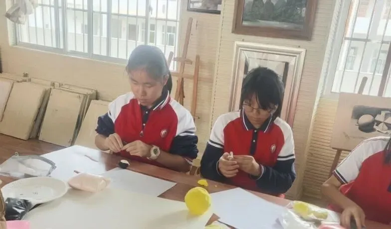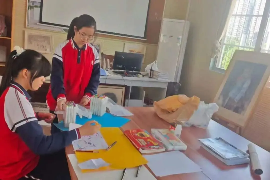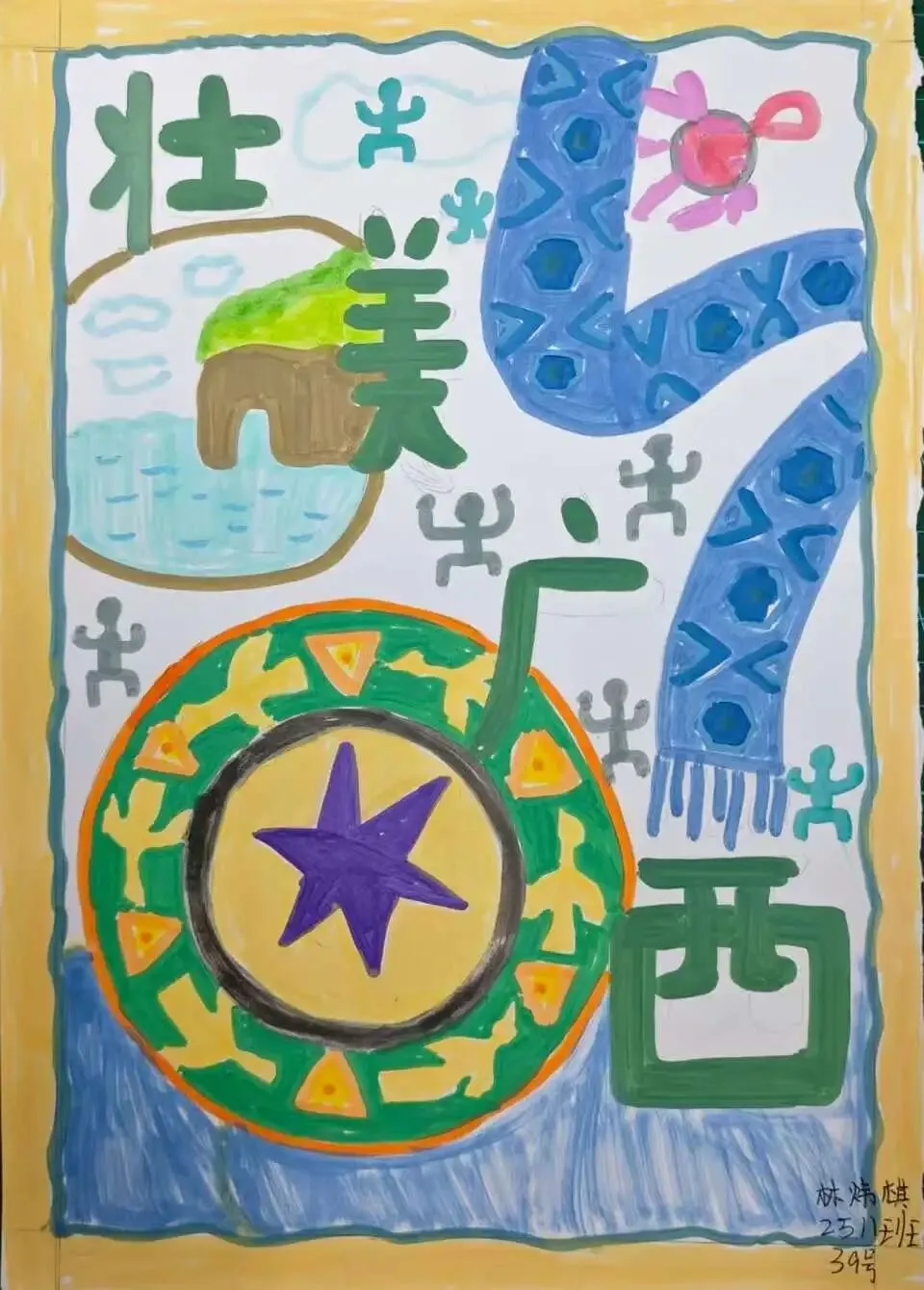 云端研学结束后,两校学生同步走进各自学校的美术室,将VR课堂中的所见所感转化为创作灵感。他们采用手工、绘画等形式,有的用黏土复刻铜鼓纹饰,有的用水彩描绘壮锦图案,还有的以花山岩画为原型创作创意画作。在动手实践中,学生们将对壮乡文化的理解融入作品,让云端研学成果落地生根。通过“云端参观+线下创作”的联动,两校学子在探寻壮乡文脉的过程中,进一步增强了对中华文化的认同感和自豪感,坚定了文化自信。