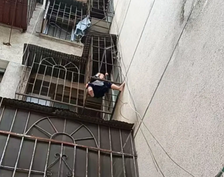 当天16点50分,明秀小区安保秩序队长赖福生巡逻至小区某单元楼下时,隐约听到一阵嘶哑的孩童哭声。他循声抬头一瞥,瞬间倒吸一口凉气——二楼阳台防盗网上,一名幼童的身体正悬挂在半空,孩子的脚卡在防盗网的缝隙里,整个身体摇摇欲坠。孩子因惊吓过度,哭声已经变得嘶哑,随时都有坠落的风险,情况万分危急!