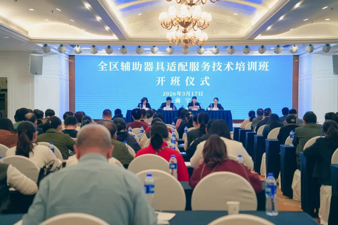 2026年3月17日至18日,全区辅助器具适配服务技术培训班在南宁举办。自治区残联党组成员、副理事长、一级巡视员许健强出席开班仪式并讲话。