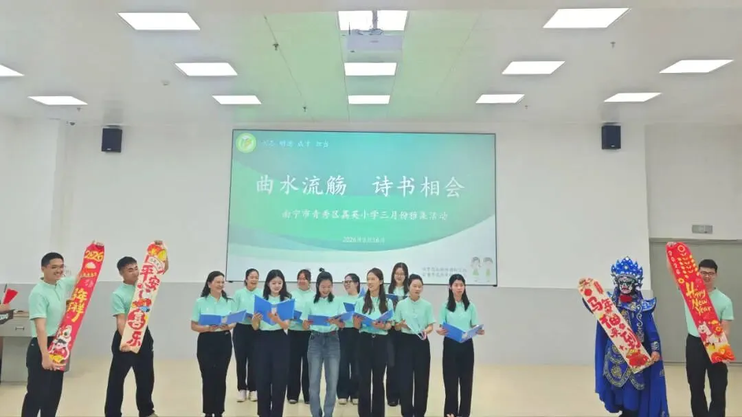 一年级教师团队以诗为媒、以歌传情,将配乐诗朗诵《万马奔腾》与歌曲《友谊地久天长》巧妙融合,奔腾的诗意搭配绵长的旋律,尽显团结向上的精神风貌。