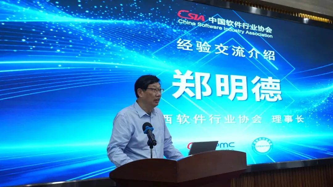 广西软件行业协会理事长郑明德介绍了近年来协会始终坚守“服务企业、规范行业、发展产业”的宗旨,立足广西产业定位,在推动行业规范发展、提升项目管理水平、搭建交流合作平台等方面的工作经验与实践(见图4)。并表示协会将以本次会议为契机,学习借鉴各位同仁的先进经验,紧扣中国—东盟自贸区3.0版建设机遇,聚焦项目管理能力提升,夯实行业发展根基,推动广西软件产业高质量发展。