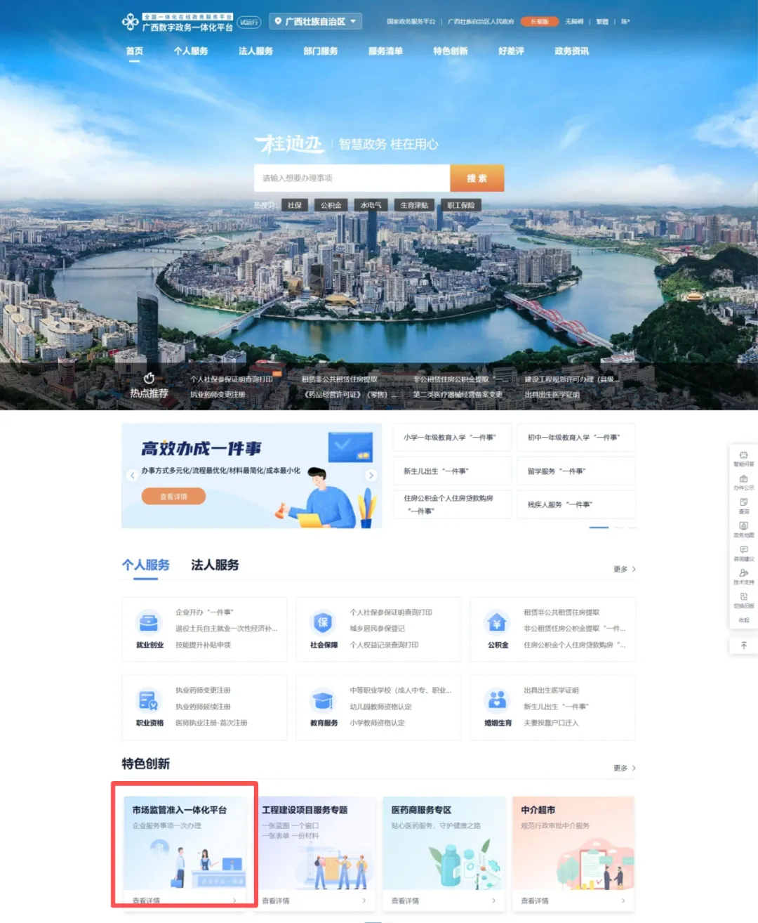 1.从浏览器搜索或输入网址,进入广西数字政务一体化平台。