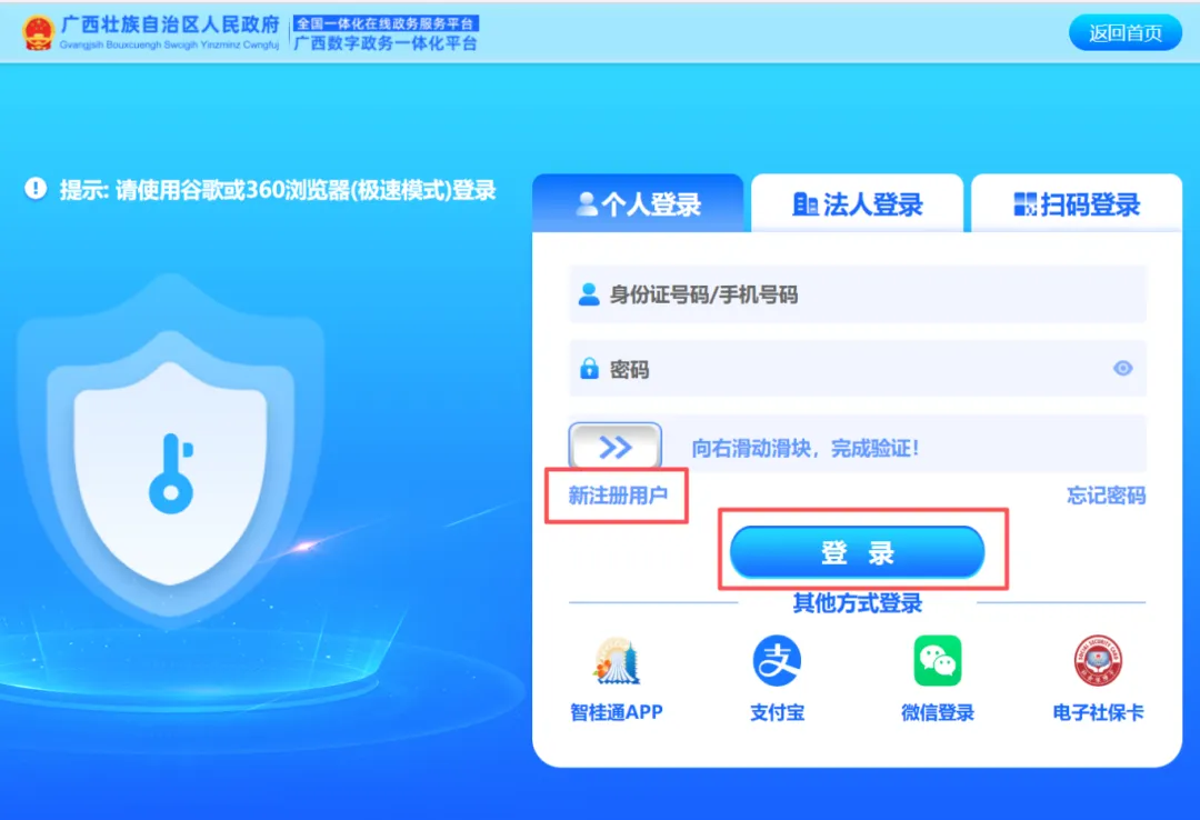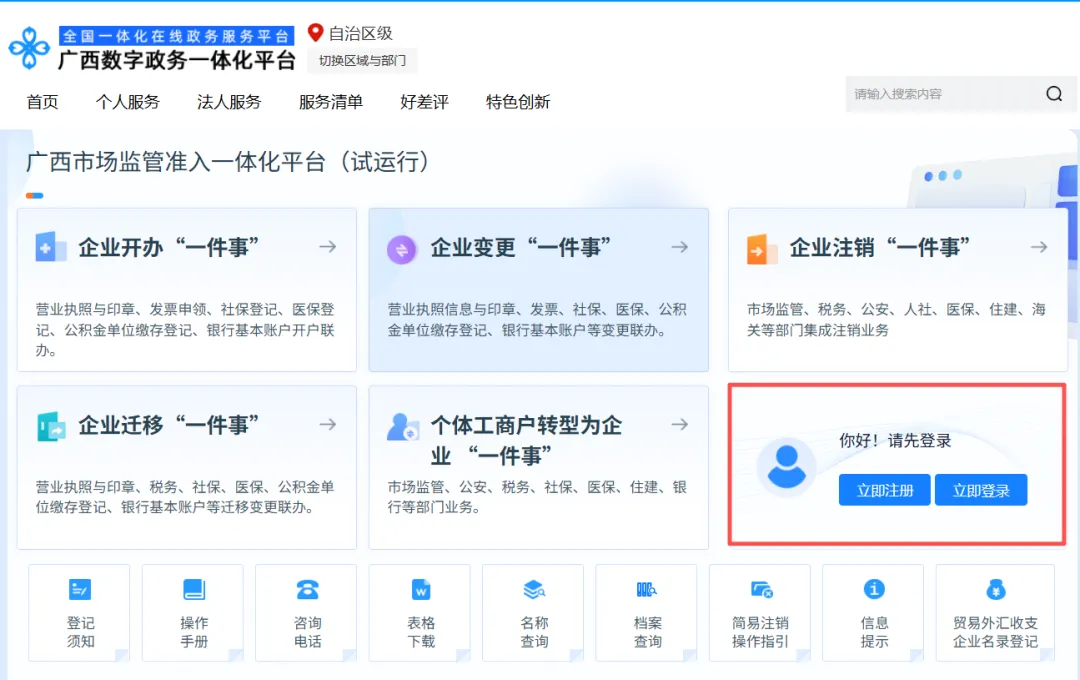 4.登录“广西数字政务一体化平台”,若未注册,请先注册再登录。