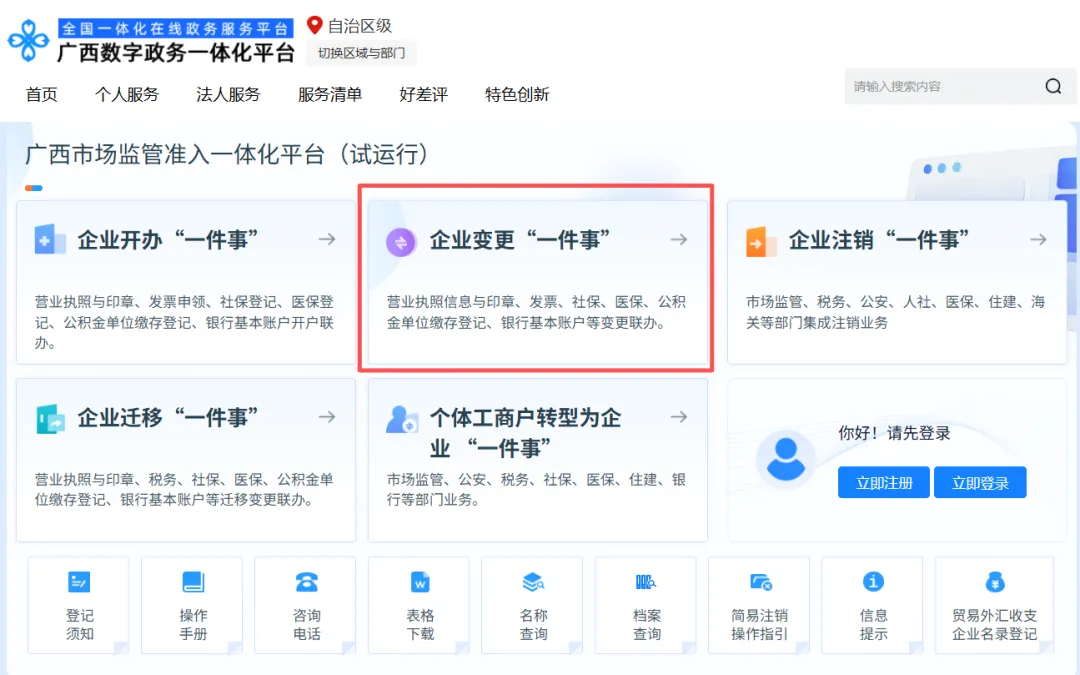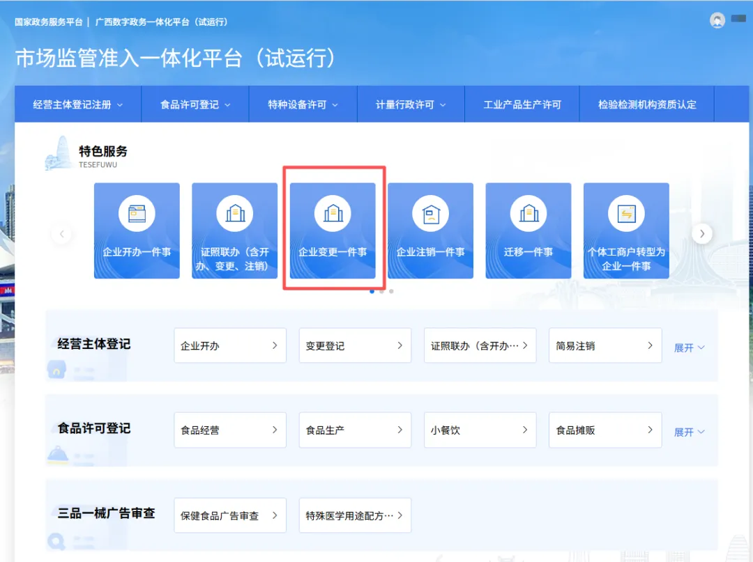 5.选择“企业变更‘一件事’”。