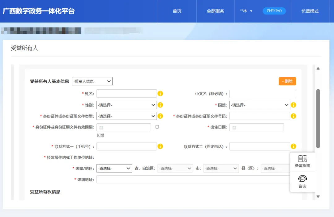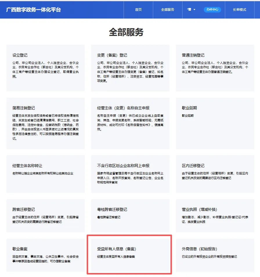 7.点击“受益所有人信息(备案)”。
