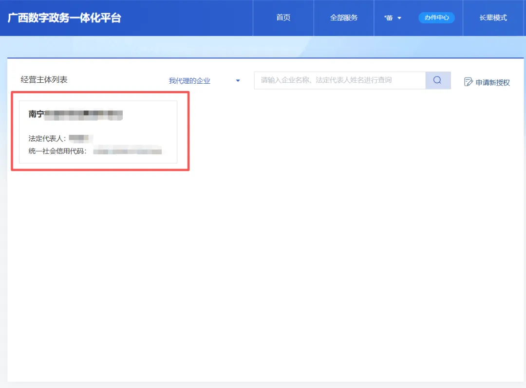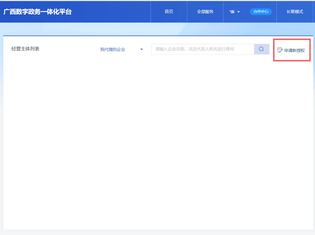 8.点击“申请新的授权,绑定拟备案企业”。