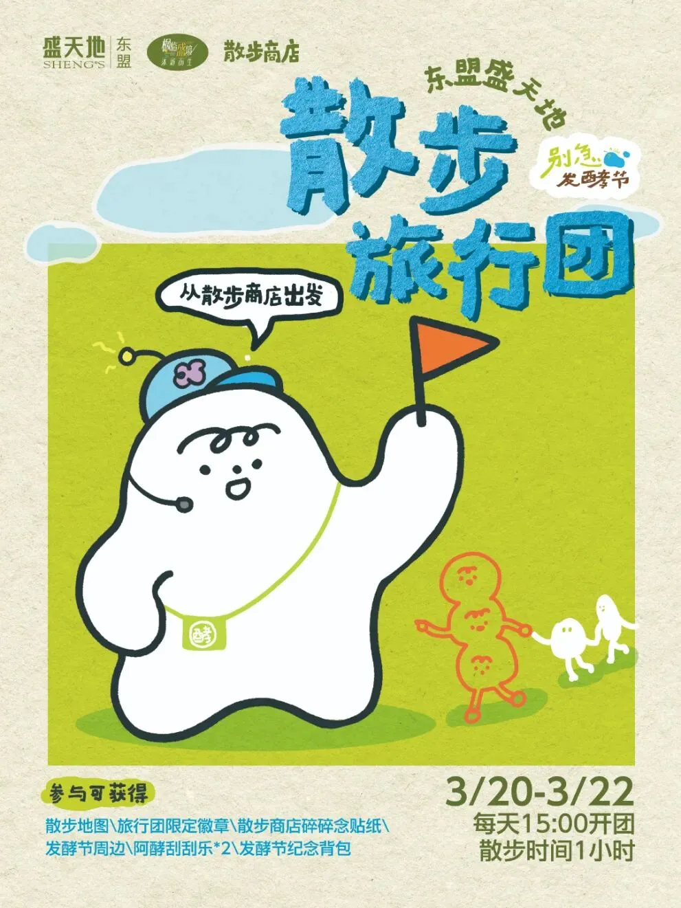 旅行团团长带领在盛天地品牌与发酵节市集品牌中探索小惊喜,在散步中探索生活的小确幸。