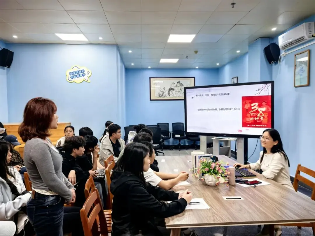 在阅读分享环节,同学们踊跃参与,围绕秋瑾的革命经历、遗言精神与女权思想,分享个人感悟。大家结合领学的内容,延伸至当代女性楷模,从她们的奋斗故事中汲取力量,思考新时代青年女性的责任与担当。参与活动的同学们纷纷表示,要以先辈为榜样,在学习与实践中践行“她力量”,让女性精神在新时代绽放更耀眼的光芒。