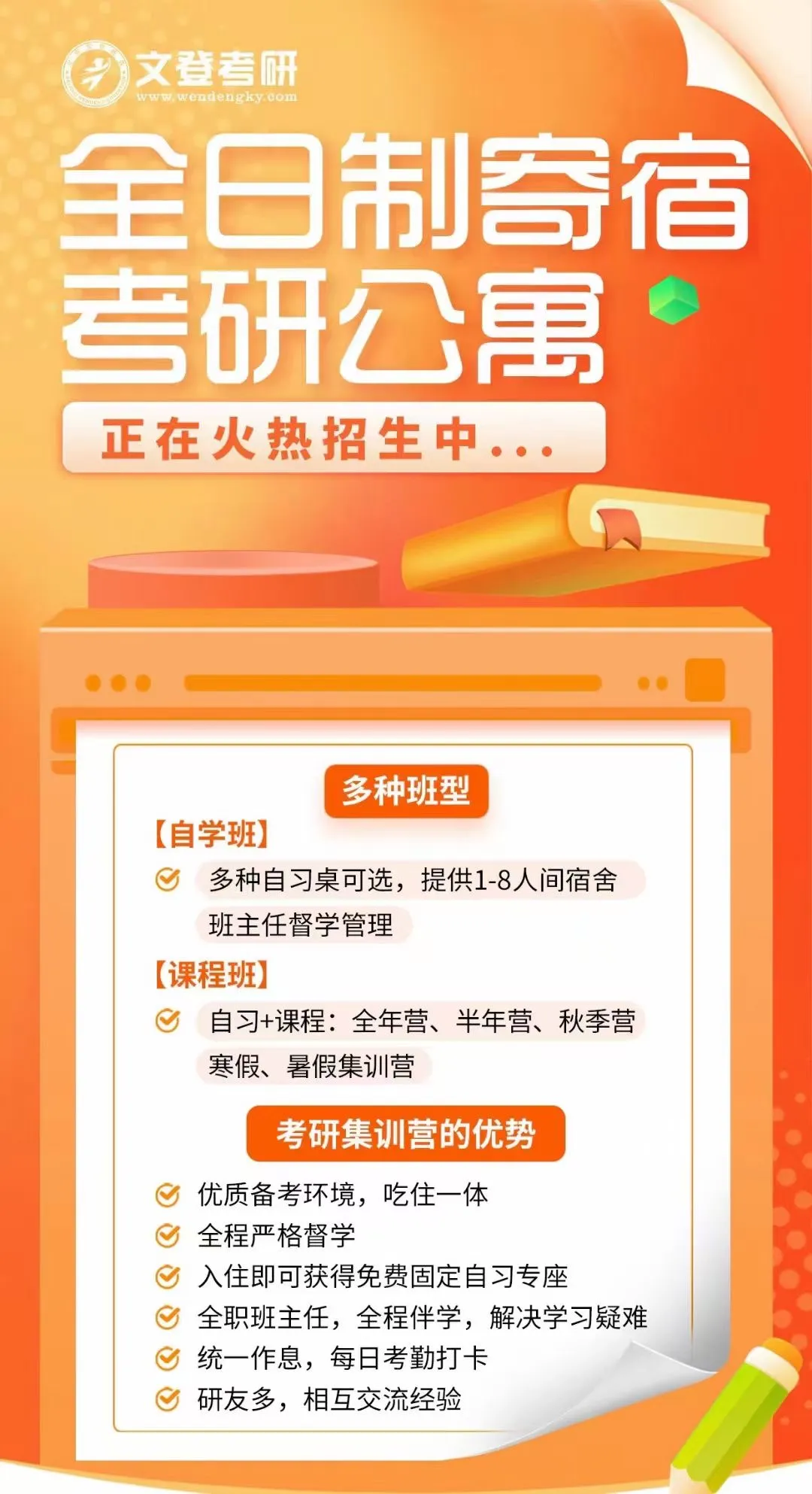 基地采用严格的全封闭管理模式,营造浓厚的校园学习氛围,由专业的教学团队全程跟进指导,致力于为每位学员带来沉浸式的寄宿备考体验,让你心无旁骛、全力冲刺。接下来,将从校园设施、自习环境、休闲区域、住宿条件、餐饮服务等多个维度,全方位展现基地的优质环境,快来一探究竟吧!