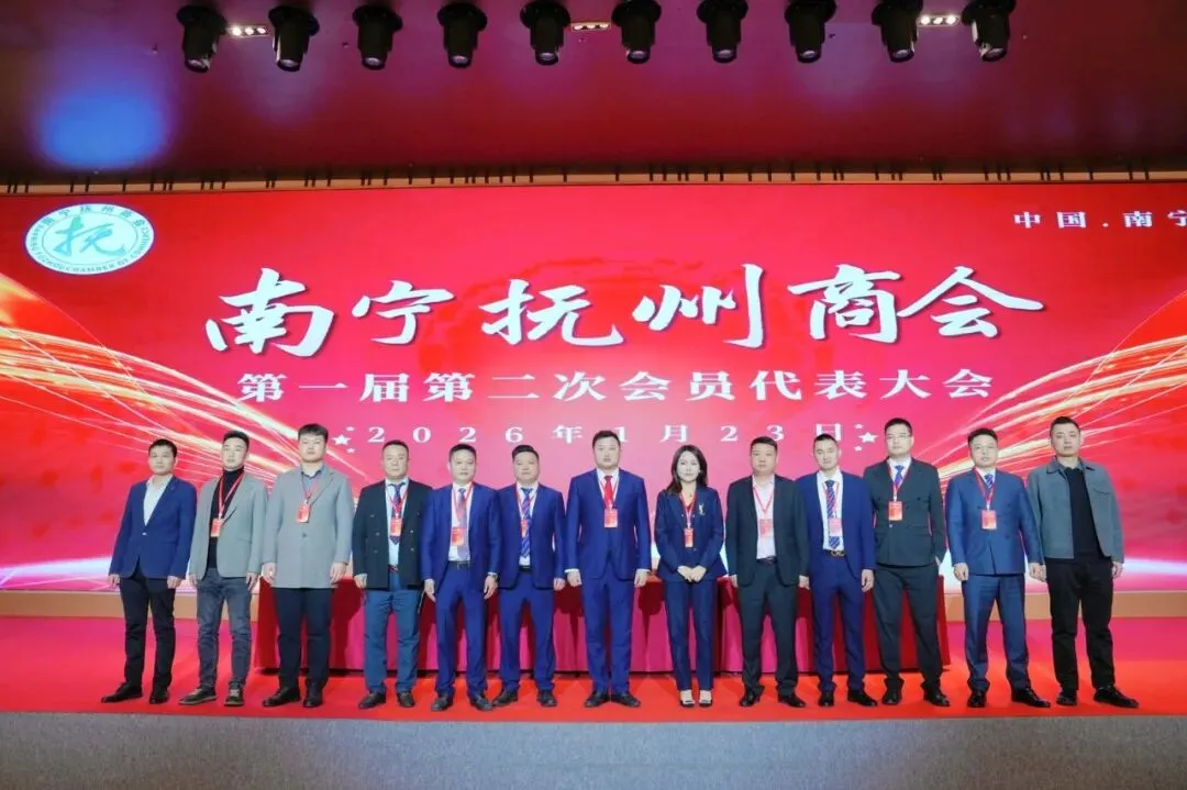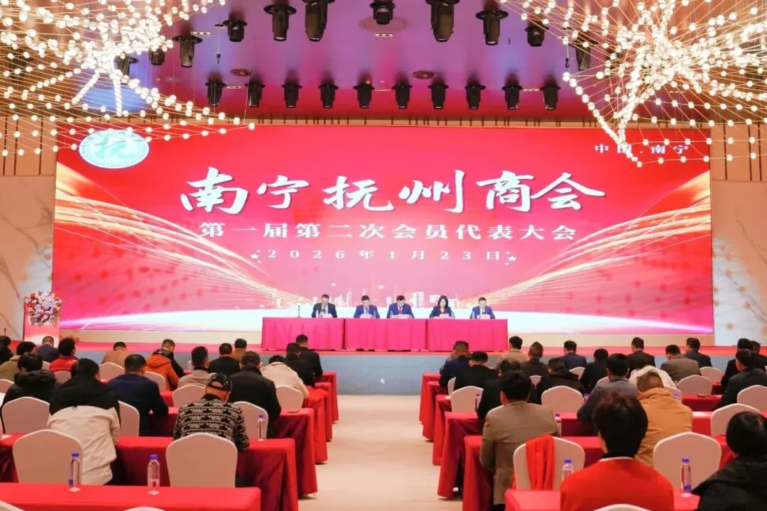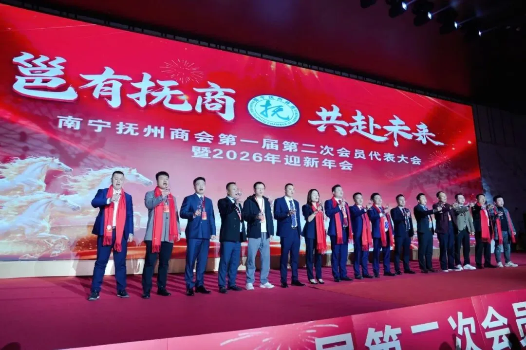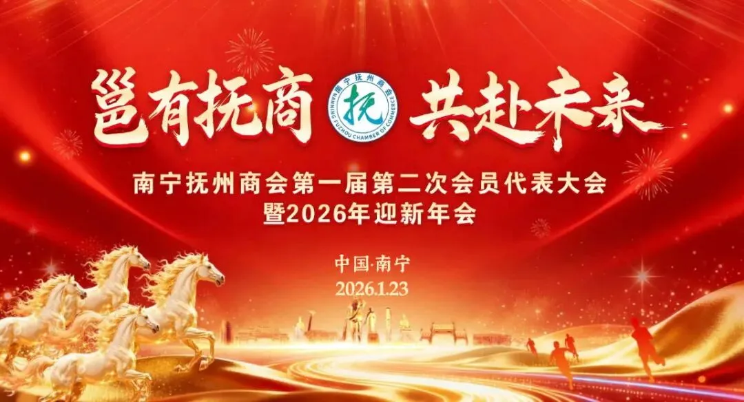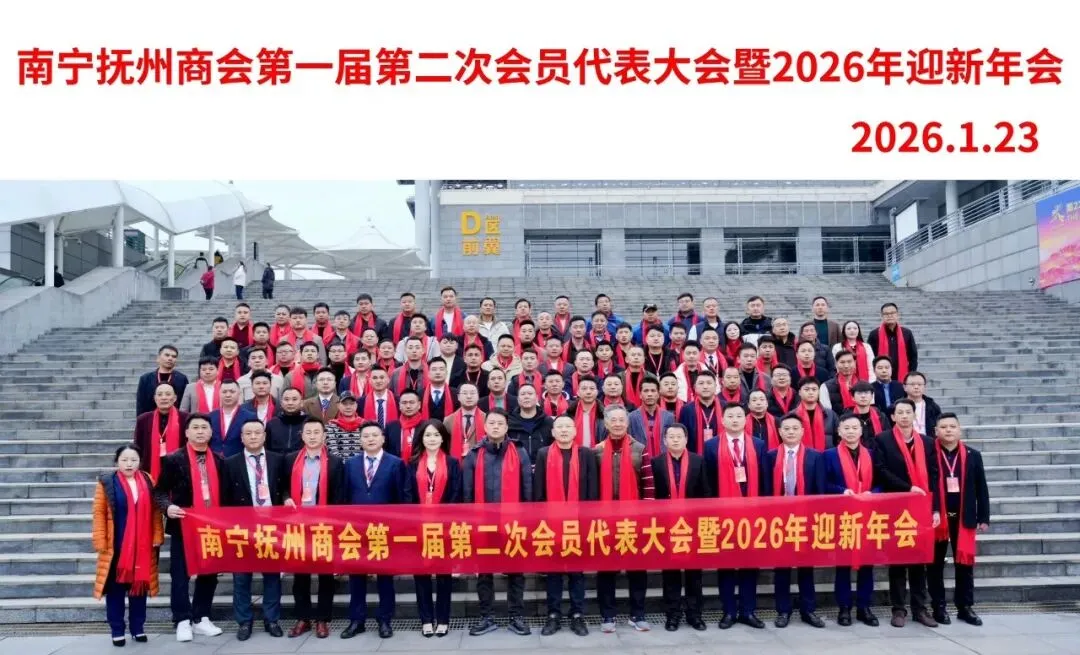 邕江水暖,共叙桑梓情长;抚商云集,同绘发展宏图。 在全国上下深入学习贯彻党的二十届四中全会精神之际,2026年1月23日,南宁抚州商会第一届第二次会员代表大会暨2026年迎新年会在南宁国际会展中心好友缘宴会中心隆重启幕。大会以"邕有抚商·共赴未来"为主题,汇聚商会全体会员、两地领导、各兄弟商会代表及特邀嘉宾,共计480余人齐聚一堂。大家怀着对桑梓的无限眷恋与对未来的坚定信心,在庄严热烈的氛围中,共襄发展盛举,共绘宏伟蓝图,共同凝聚新时代奋斗力量,谱写南宁抚州商会高质量发展的崭新篇章。