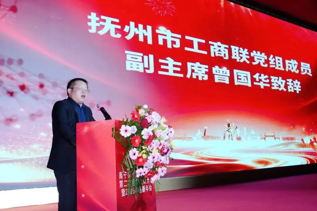 随后,南宁市工商联党组成员、副主席、三级调研员、市工商行业行业党委书记蔡丽蓉,抚州市工商联党组成员、副主席曾国华及抚州乡贤广西国资委原党委书记兼主任管跃庆分别先后上台进行致辞,对南宁抚州商会成立以来取得的成绩进行肯定与支持。