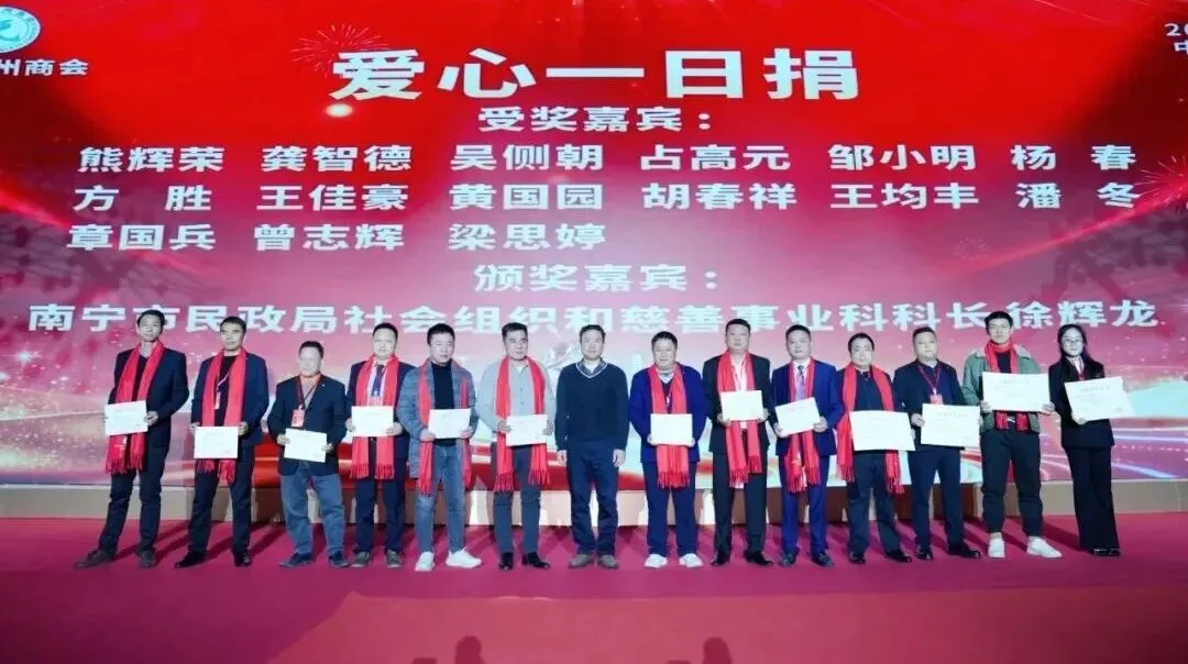 ▲南宁市民政局社会组织和慈善事业科科长徐辉龙为南宁抚州商会积极参与慈善一日捐的会员们进行颁奖。