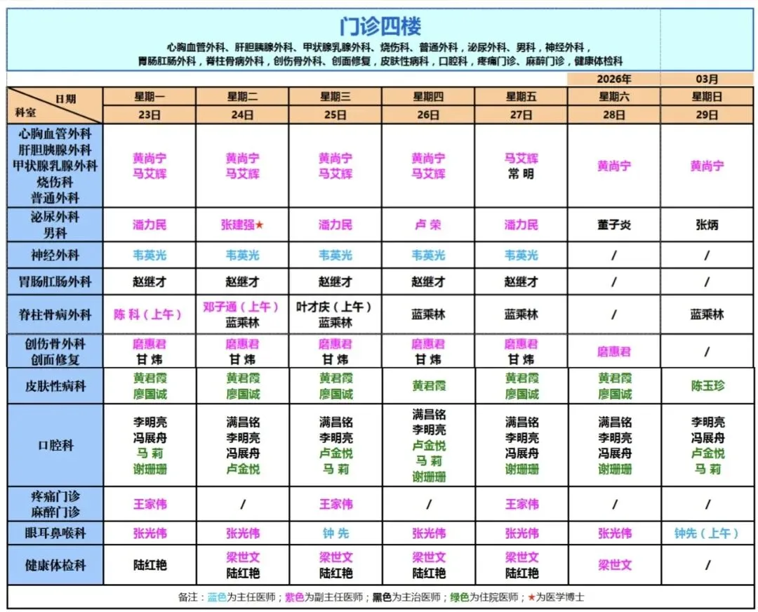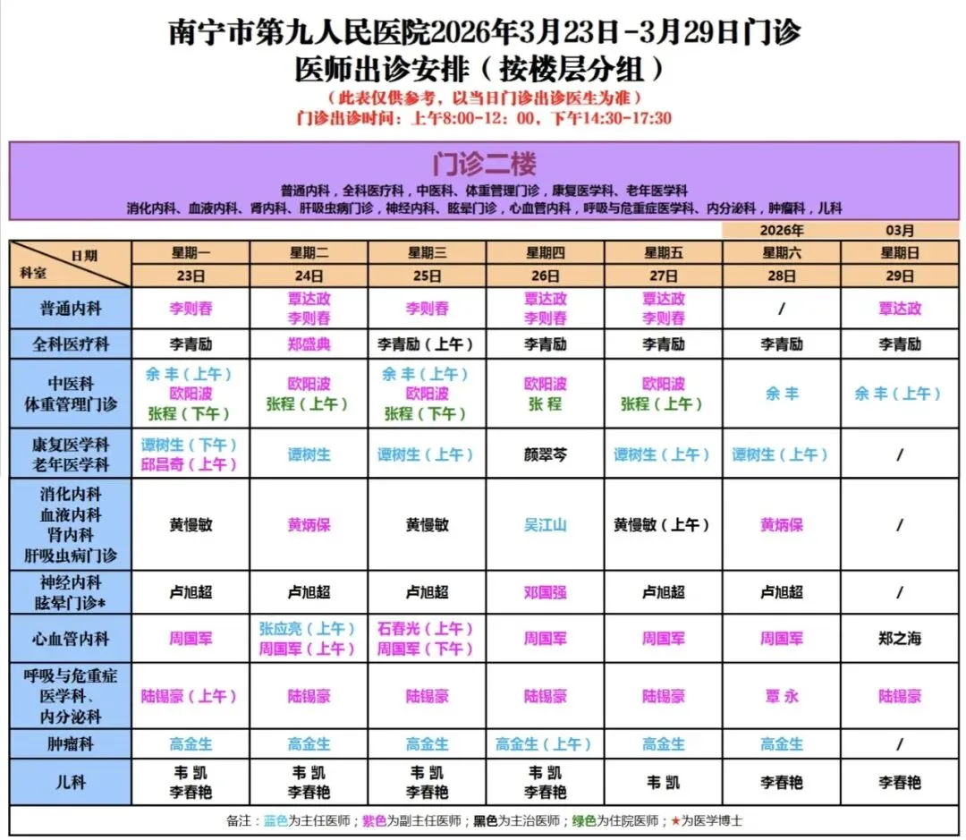 >南宁市第九人民医院门诊医师出诊安排来了(3月23日-3月29日)