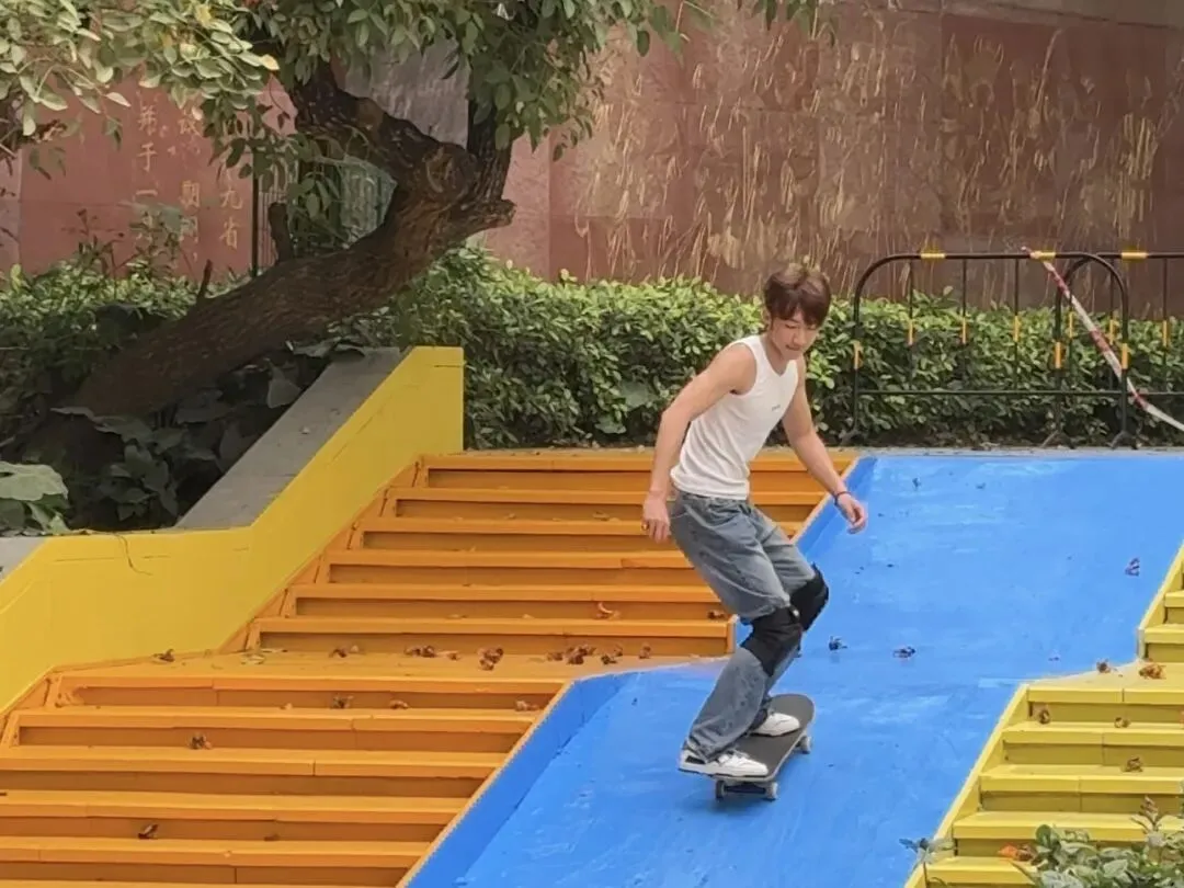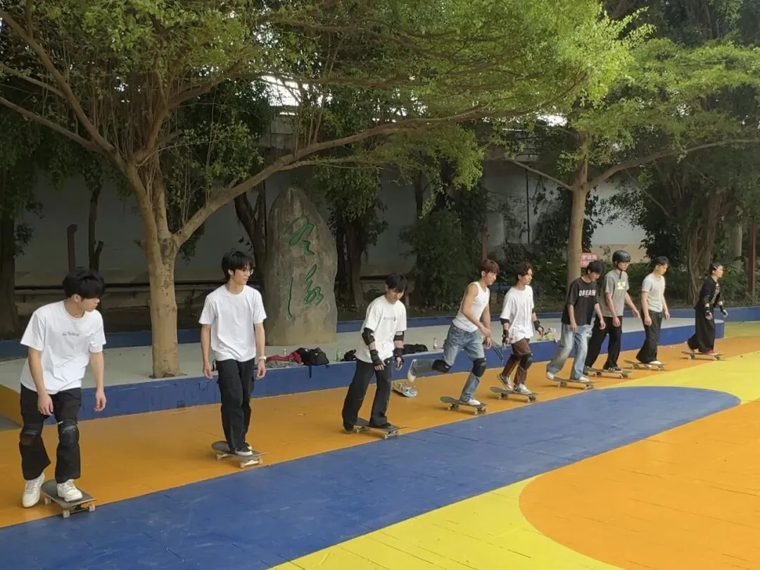 走进畅游阁旁,一片开阔平整的全新运动空间映入眼帘。平整耐磨的地面、宽敞舒适的活动区域,吸引着越来越多的滑板爱好者前来“打卡”。