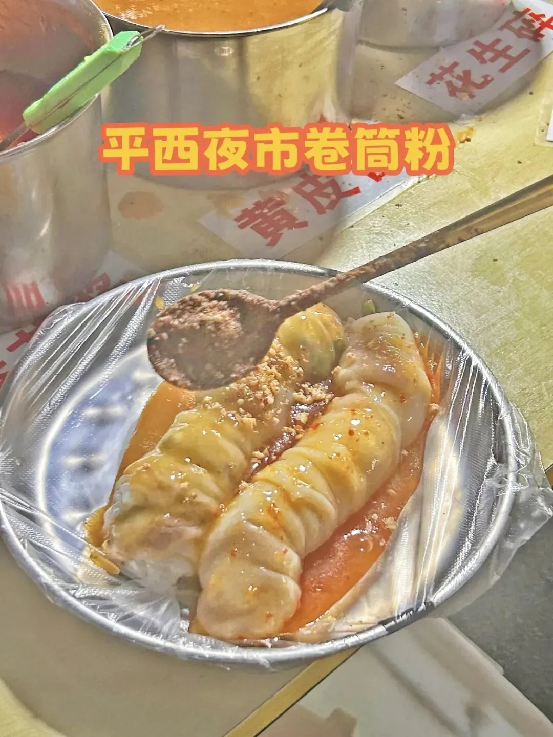 ▪️卷筒粉:米皮裹玉米碎肉,黄皮酱+番茄酱双杀,7元一条糯到心坎。